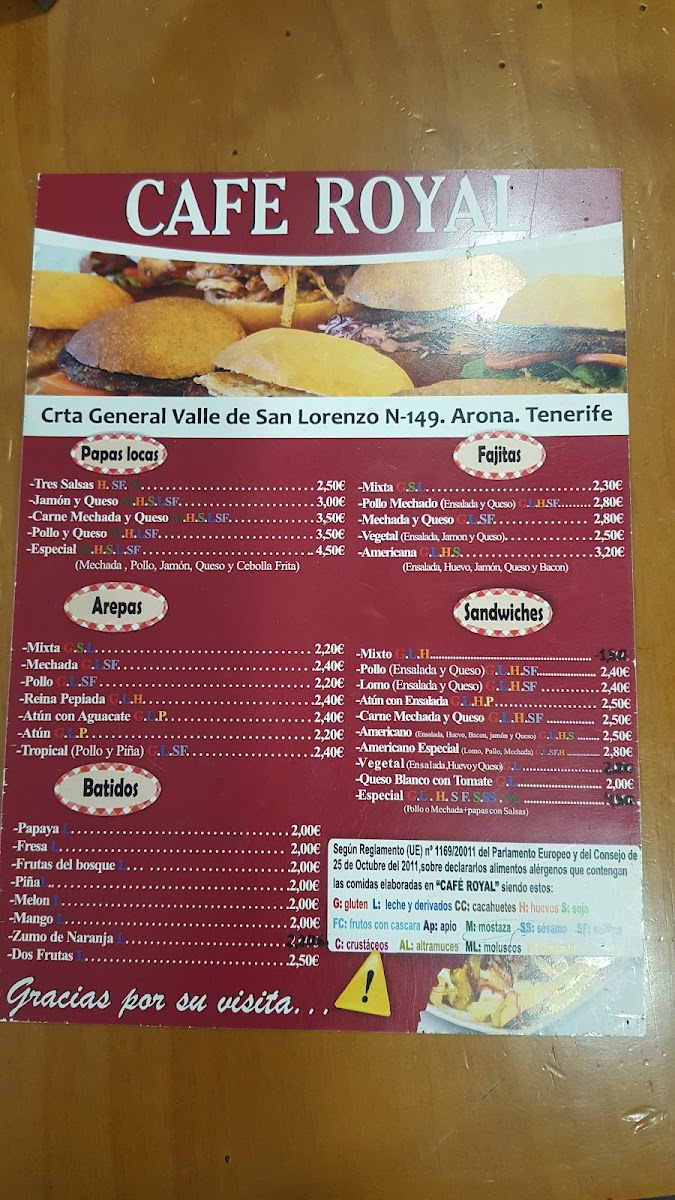 Nestled in the scenic surroundings of Arona, Spain, Cafetería Royal is a culinary gem that delights both locals and visitors alike. The menu showcases a delectable range of offerings, with an emphasis on high-quality coffee and flavorful dishes. Patrons rave about the arepas, which boast generous portions at reasonable prices, making them a standout choice.